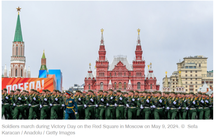 2024年5月6日的红场阅兵仪式。RT报道配图